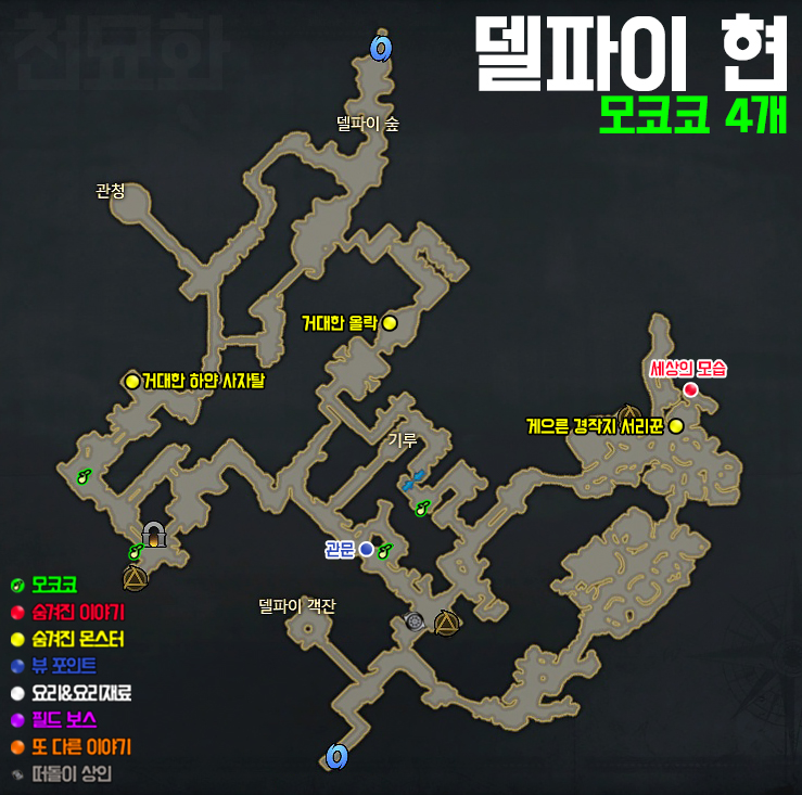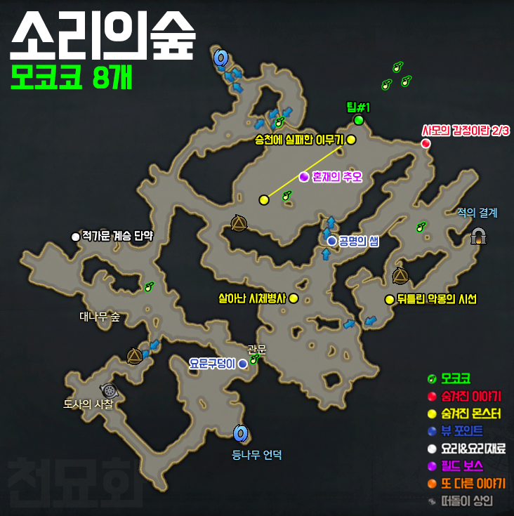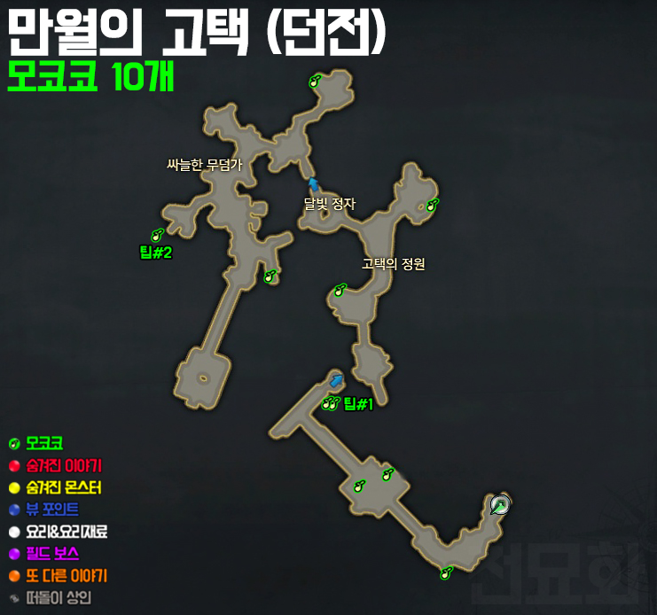 각 화살표 방향으로 들어가면 모코코를 획득할 수 있습니다.