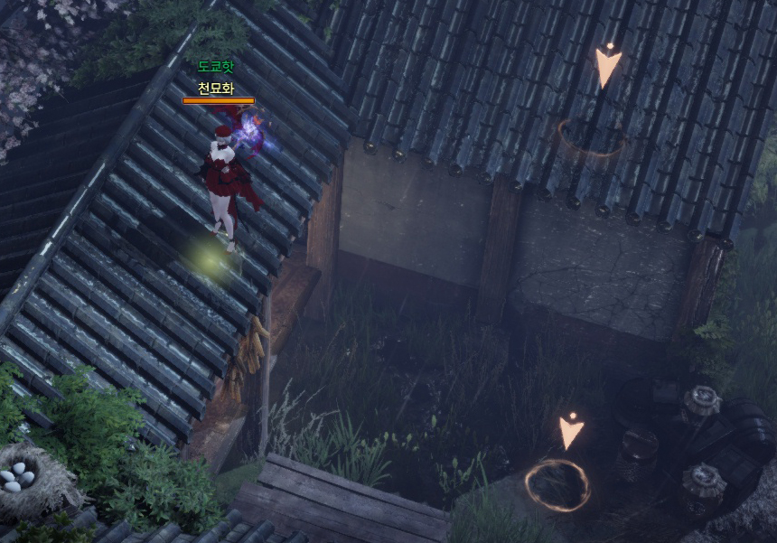 항아리를 부수면 올라갈 수 있습니다.