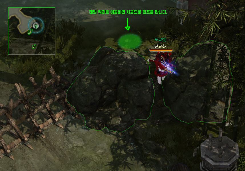 초록색 부분으로 가면 자동으로 돌 사이를 뛰어 넘어갑니다