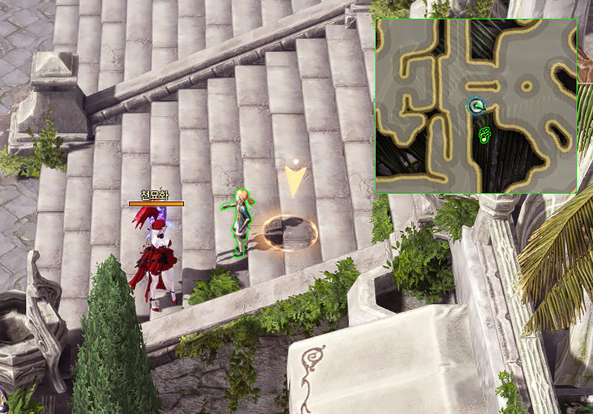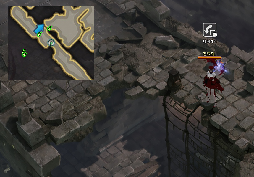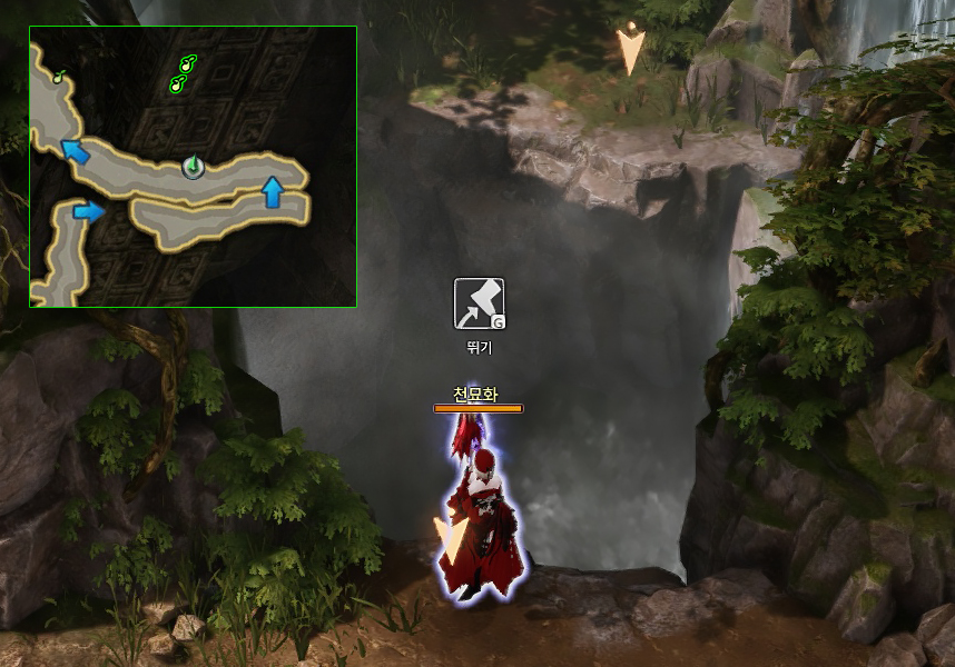 주변 몬스터를 처치하면 넝쿨을 타고 내려갈 수 있습니다.