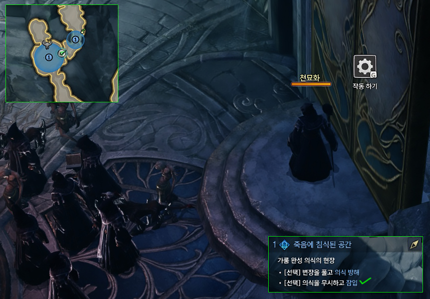 던전 퀘스트 진행 중 저 방에 들어가면 사령술사로 변장할 수 있는데