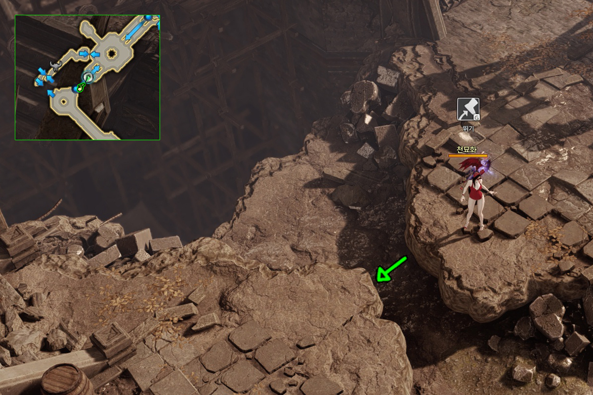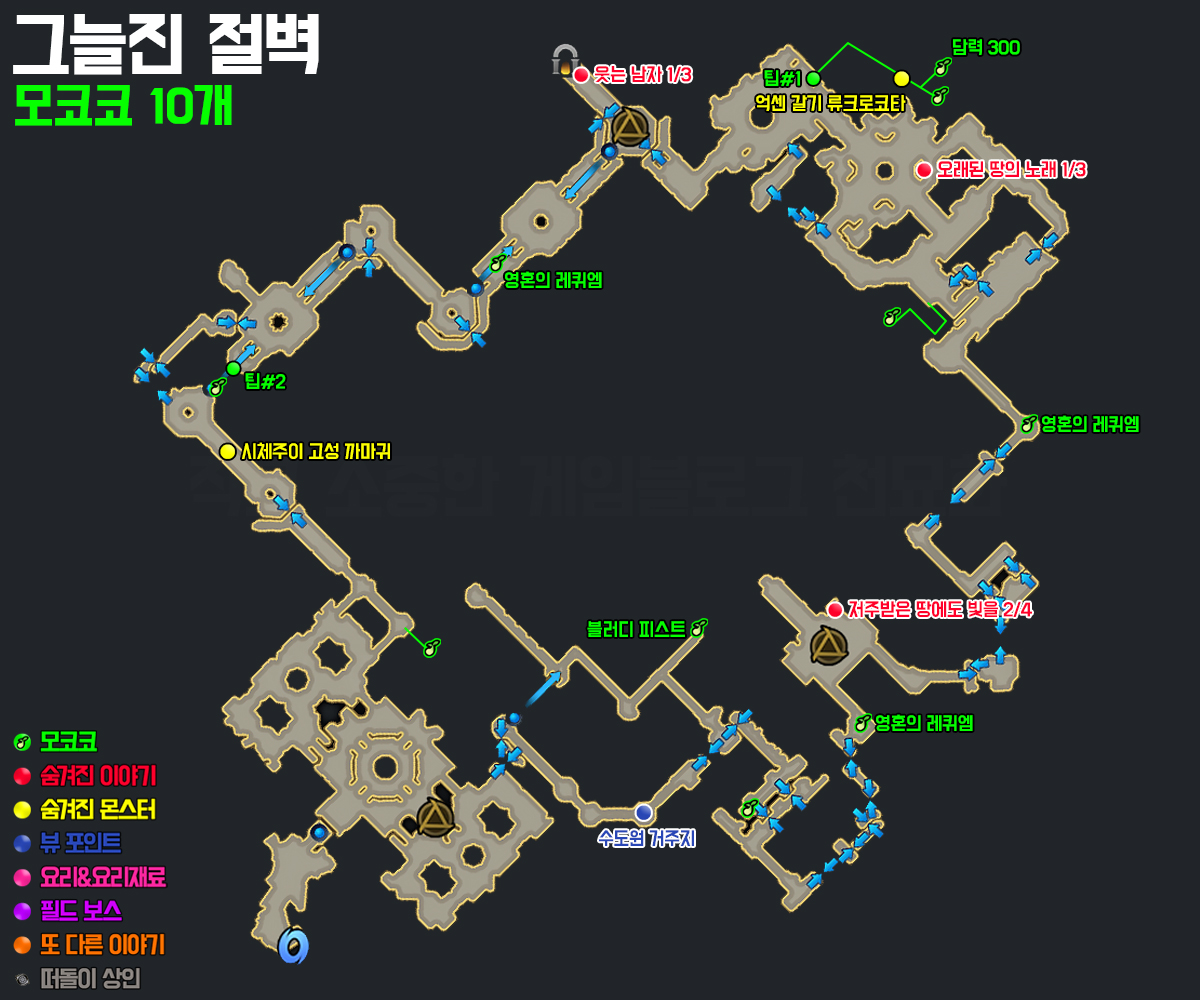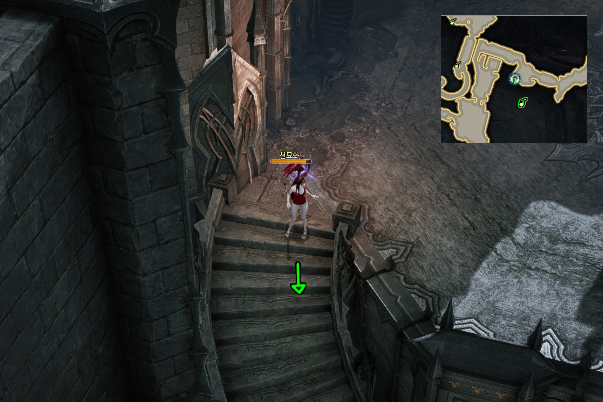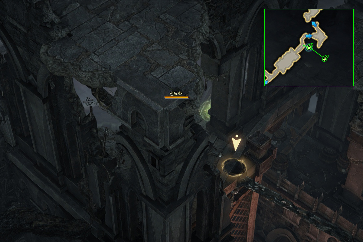 그늘진 절벽 → 폐허가 된 고성(던전) → 그늘진 절벽