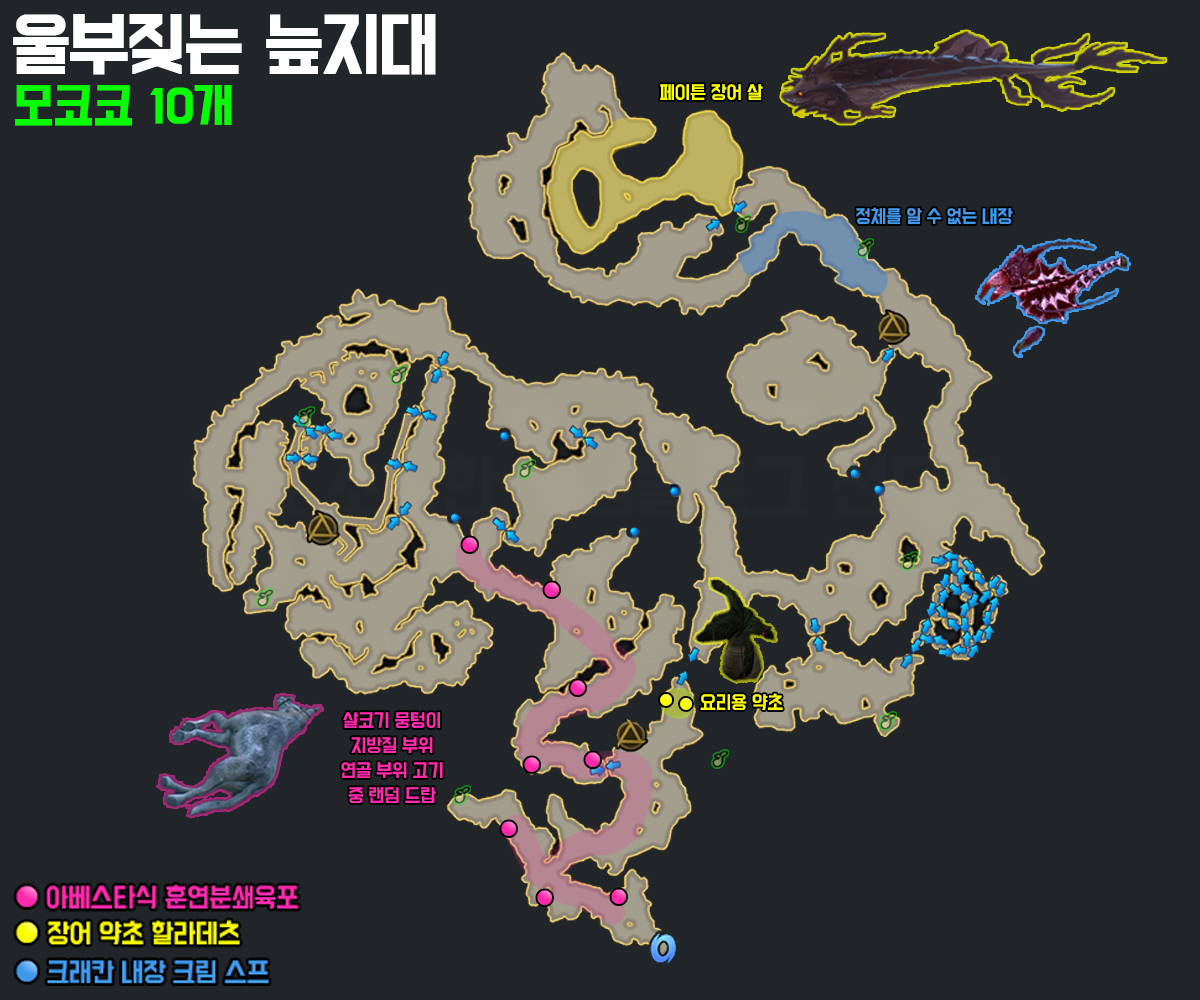 └ 지방질 부위 5개 - 울부짖는 늪지대의 '방금 사냥당한 동물 사체' 탐색 후 랜덤 드랍
