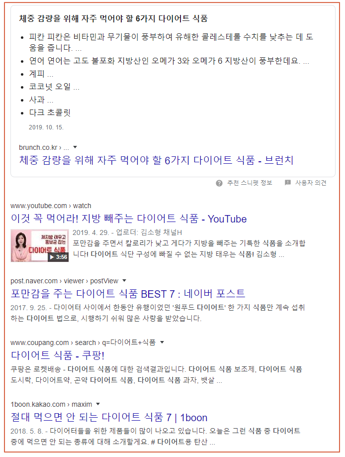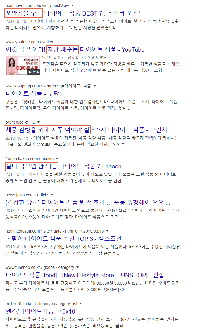 위의 예시에선 다이어트 식품을 검색한 사람들이 무얼 원하는지 잘 드러나고 있죠?