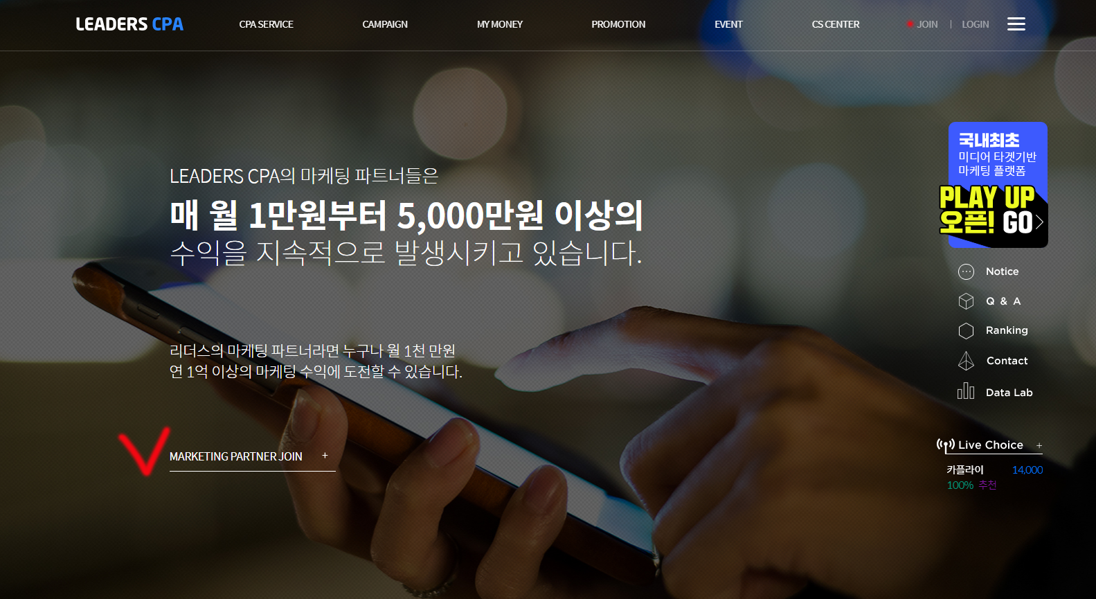 우측상단의 Join 혹은 빨간색으로 체크 된 MARKETING PARTNER JOIN 을 클릭해주세요.
