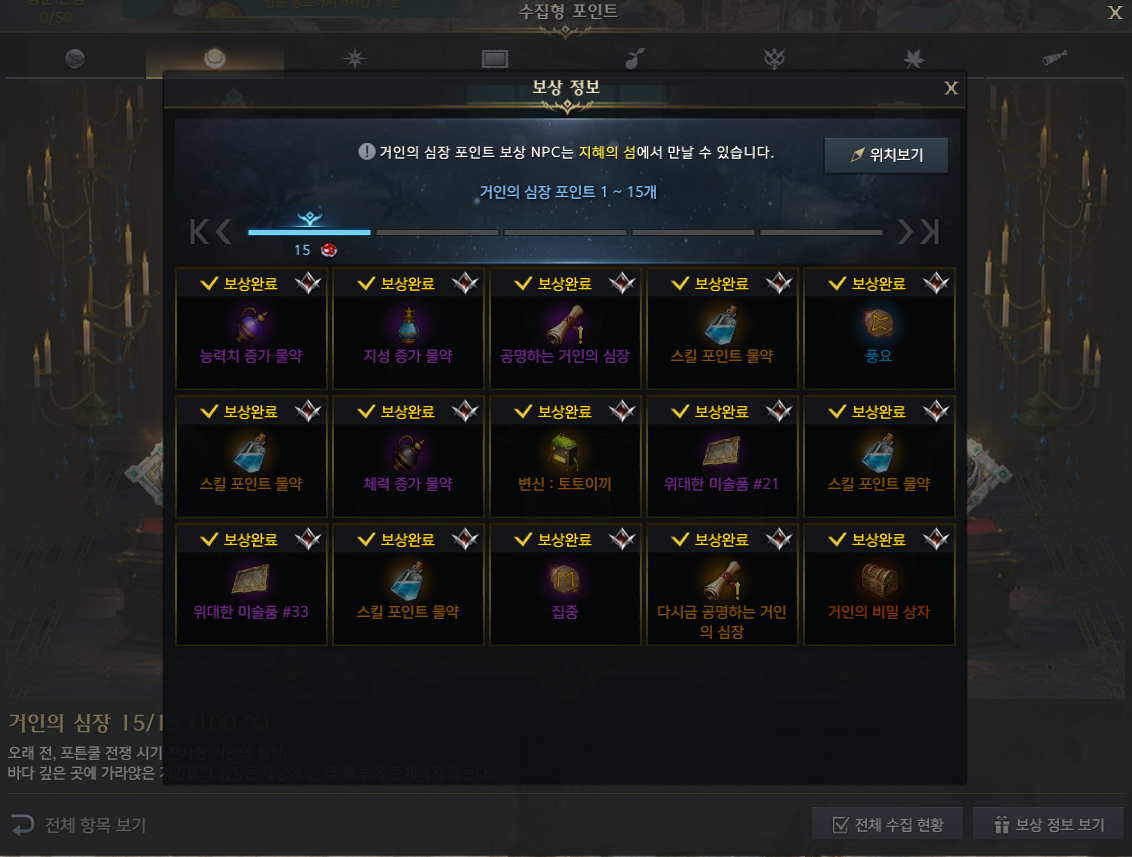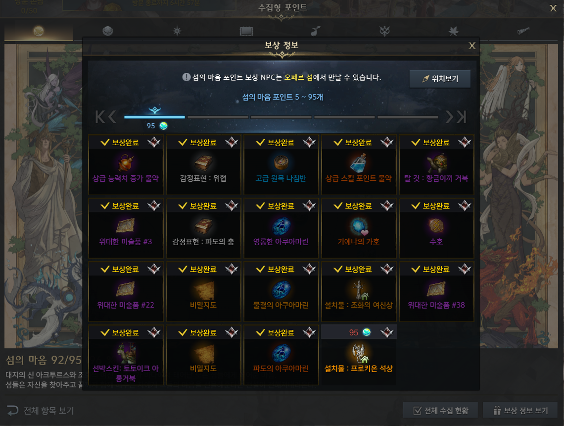 섬의 마음 수집 보상