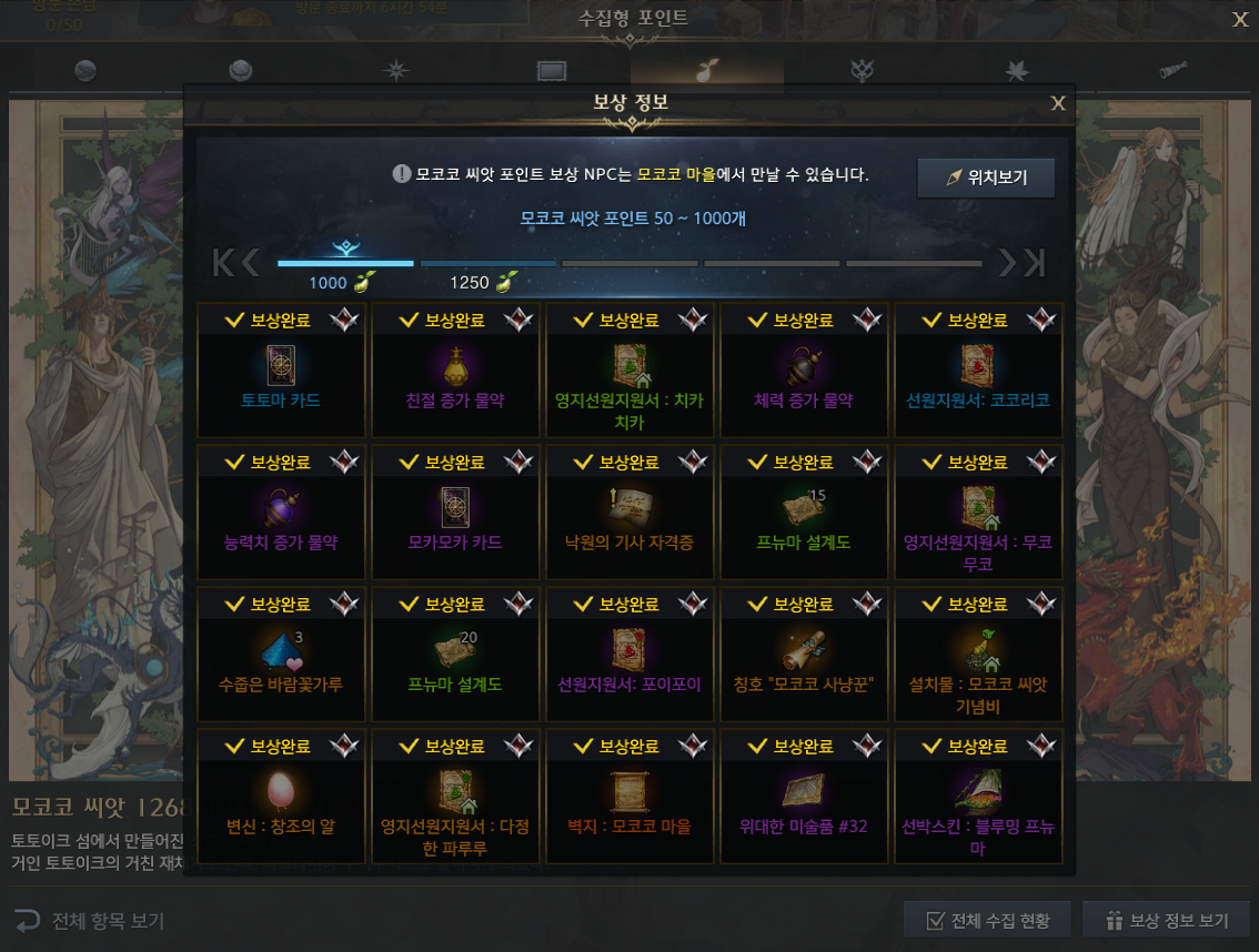 모코코 씨앗 수집 보상