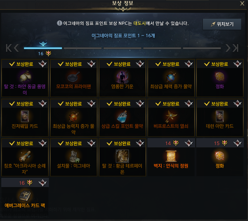 현재 이그네아의 징표는 16개까지 획득가능합니다.
