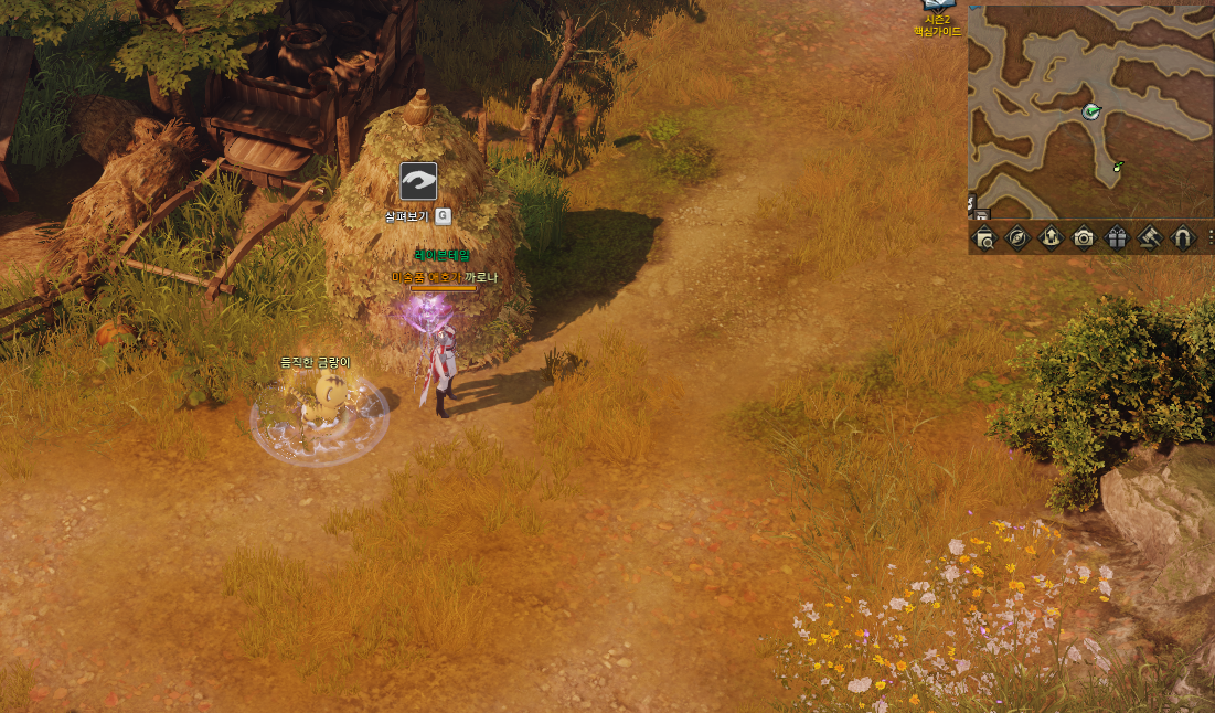 이모티콘에서 "로아엄지척"을 사용하시면 건초더미가 상호작용으로 사라지고 모코코를 획득할 수 있습니다.
