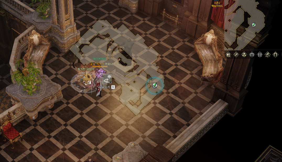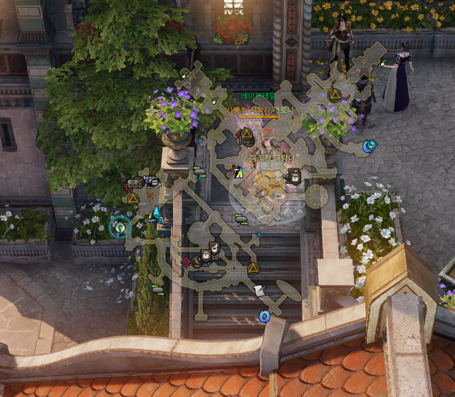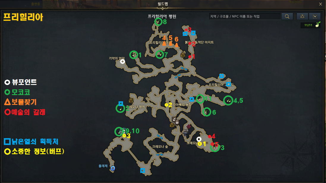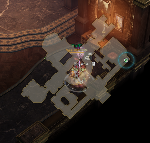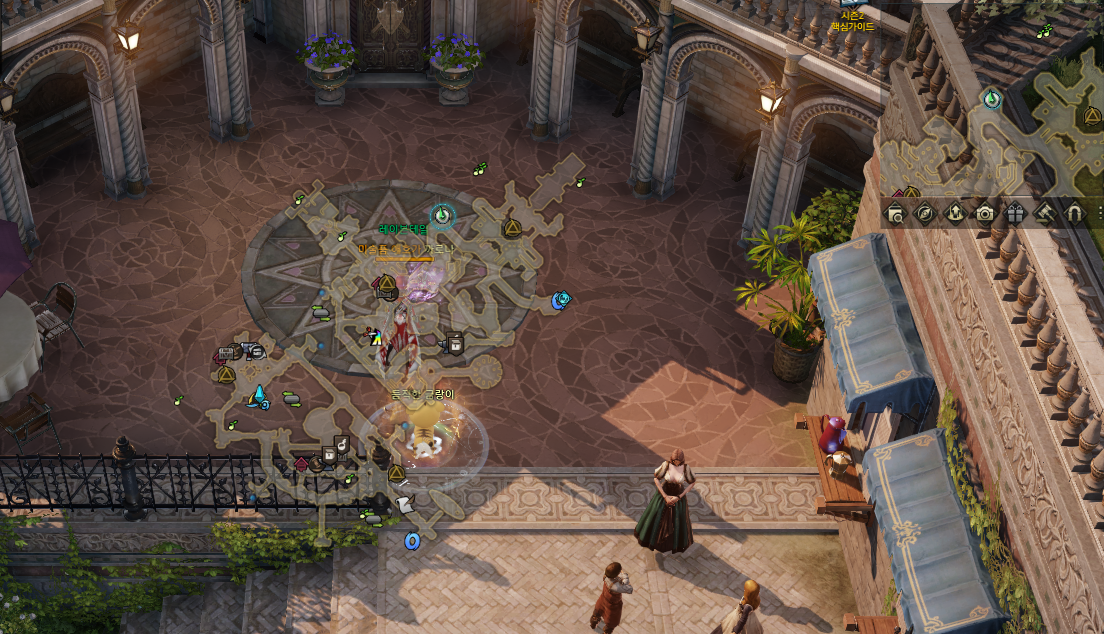 먼저 하늘색으로 표시된 1번자리에서 상호작용하시고 (10분버프) 마을12시 방향의 플레체 박물관에 진입하여 아래