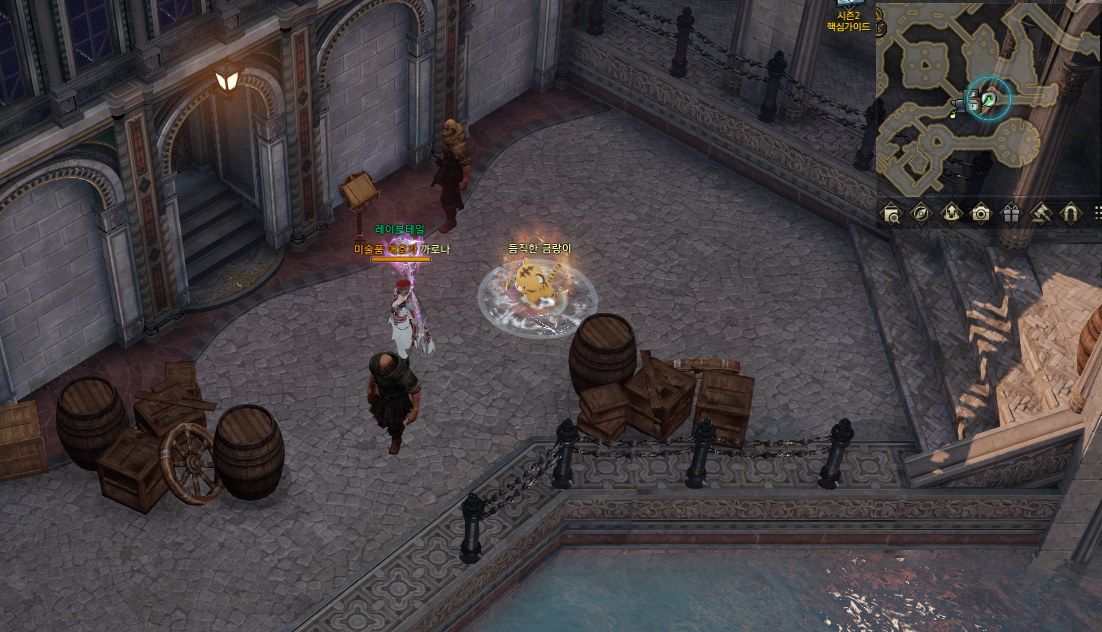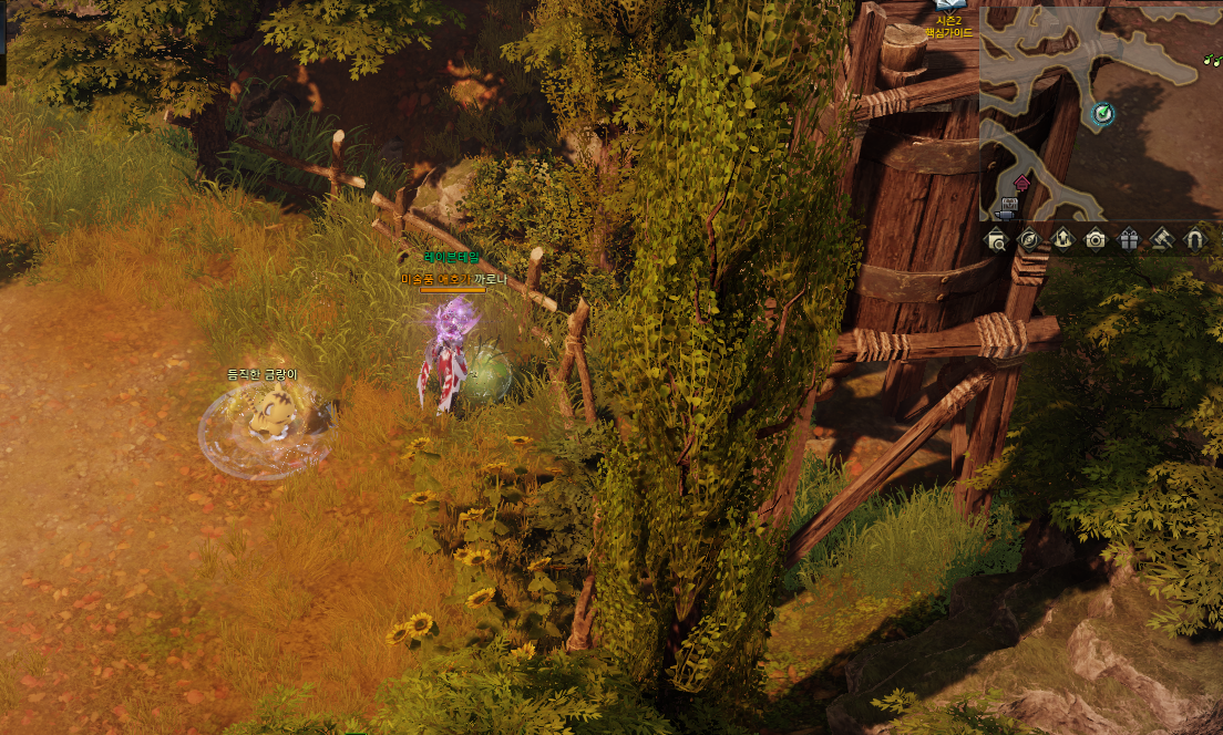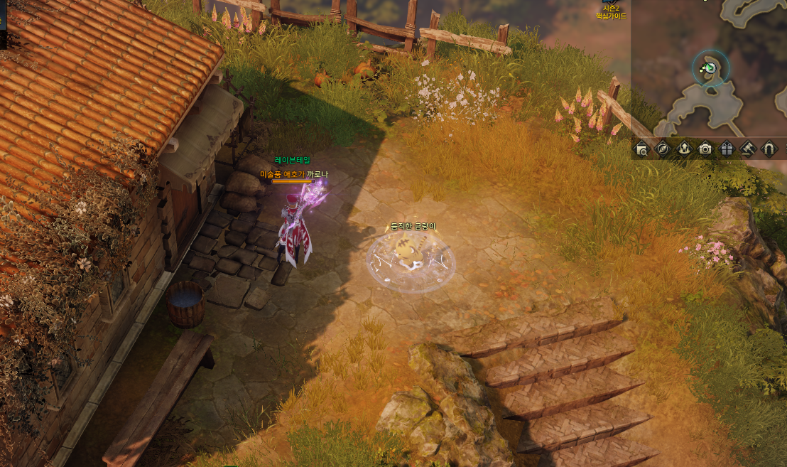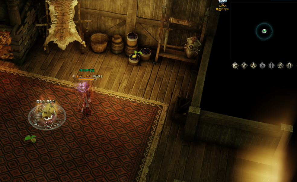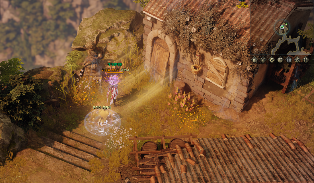5분의 쿨타임 버프가 있고 마을 중앙에 표시 된 부분대로 상호작용 하시면 됩니다.