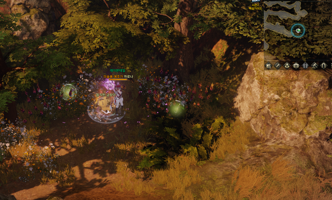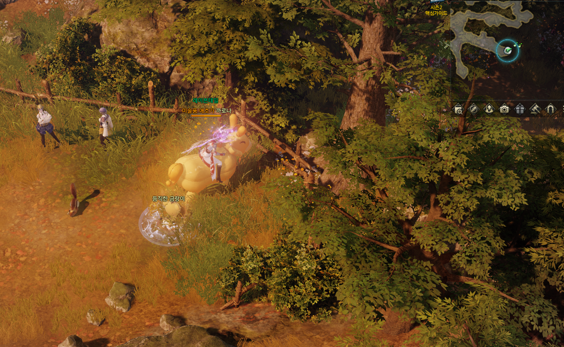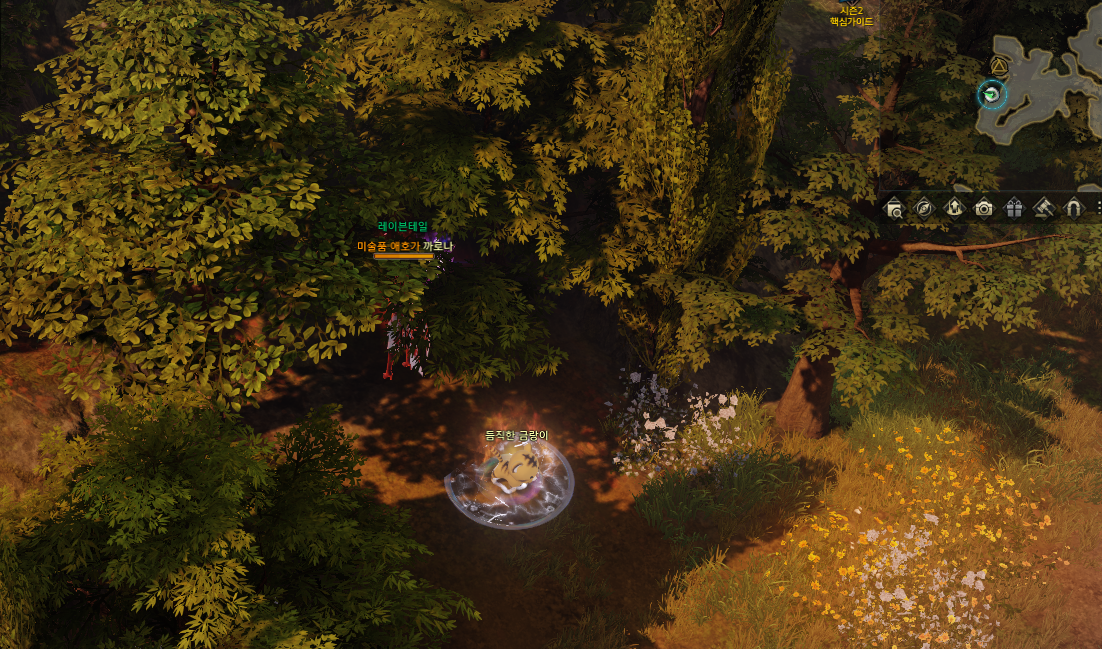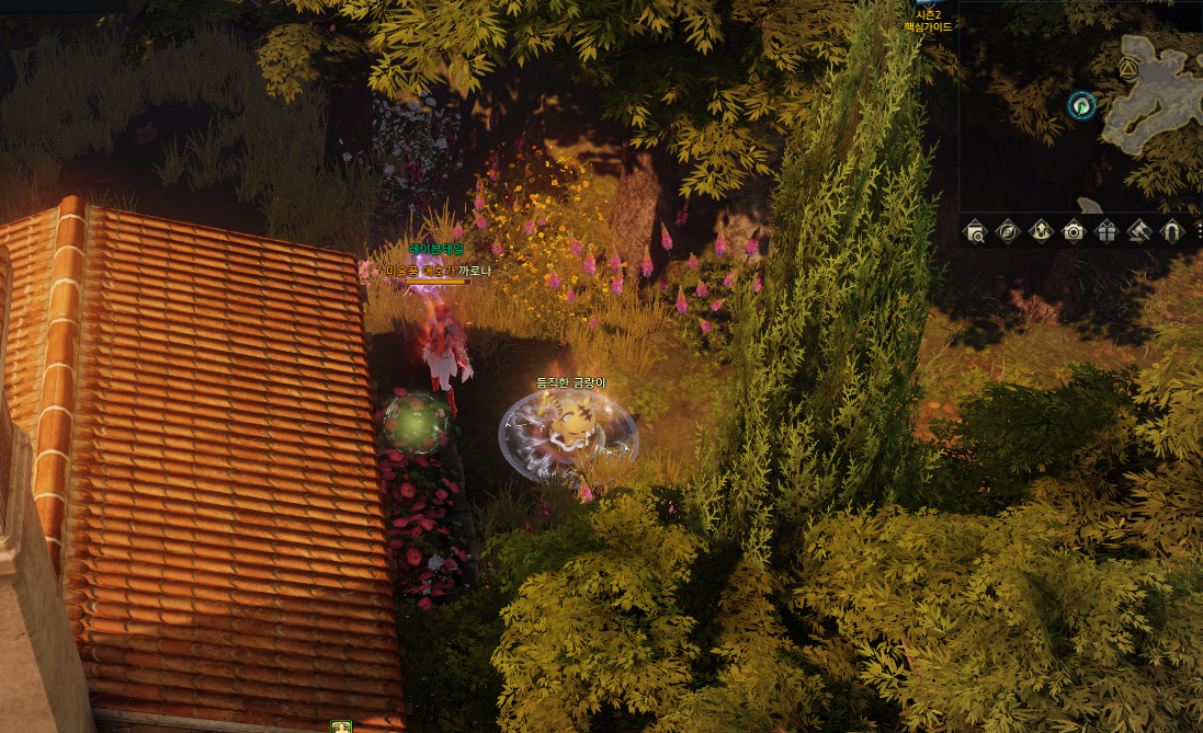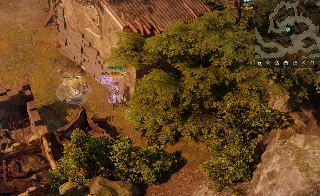 5분의 쿨타임 버프가 있고 마을 중앙에 표시 된 부분대로 상호작용 하시면 됩니다.