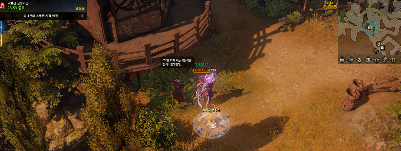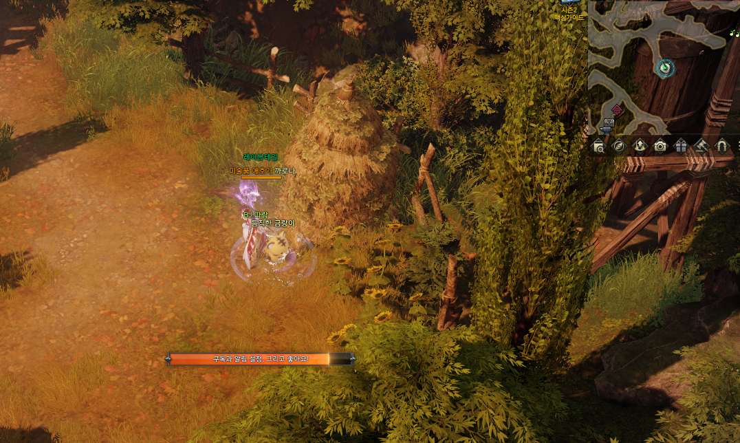 지도에 표시 된 위치에 있는 NPC의 대화를 들으면 자동으로 버프창이 생깁니다.