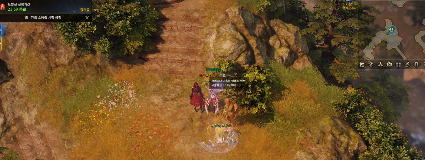 6.미니맵의 위치로 가시면 근처를 빙빙도는 BJ따람 NPC가 있고 해당위치로 올때 상호작용 하신 후