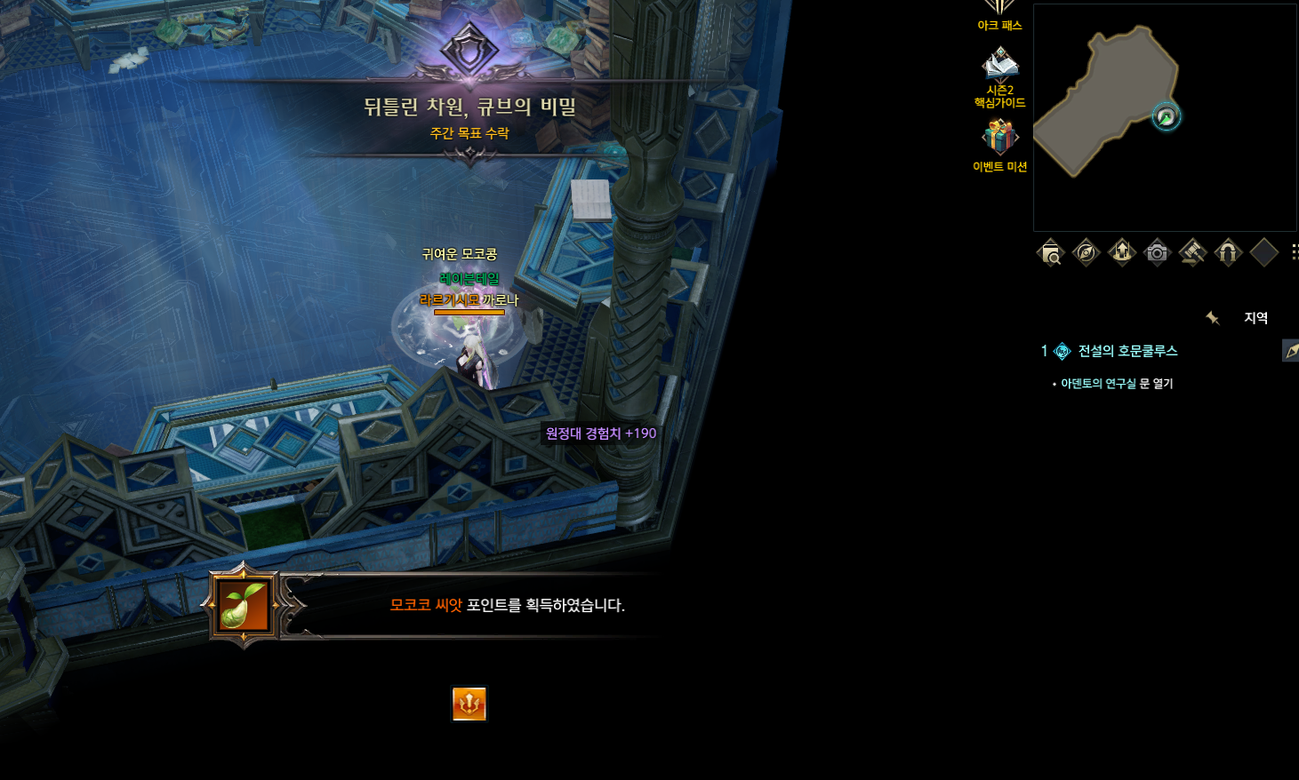 #9,10 '정령의 인장'버프 획득 후 해당위치에서 입장하여 모코코2개 수집