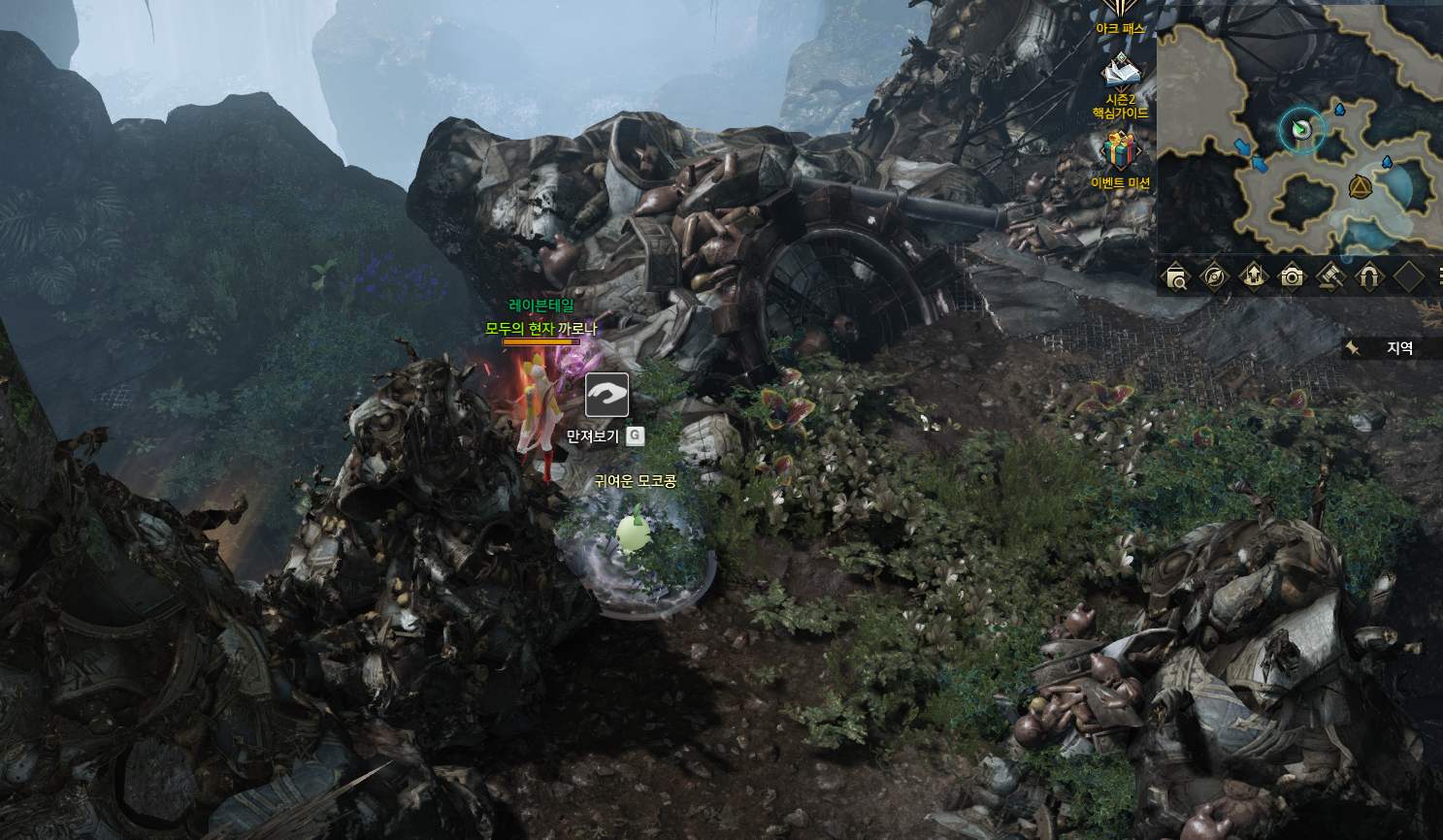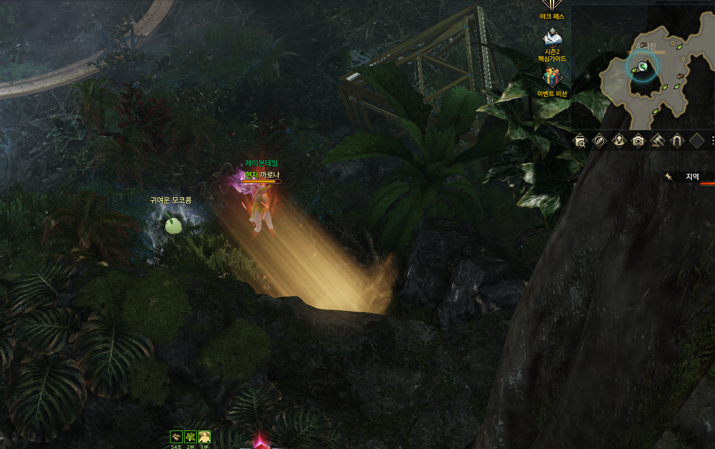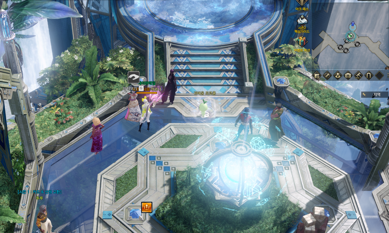 #8시가 돠면 칼리나리에 대기한 후 지역챗을 통하여 포탈이 생겼다는 곳으로 가서 현자의 비약 사용/현자로 변신 후 포탈로 입장한 뒤 R버튼으로 변신해제 후 모코코를 획득하시면 됩니다.[1트 3모코코 해결]