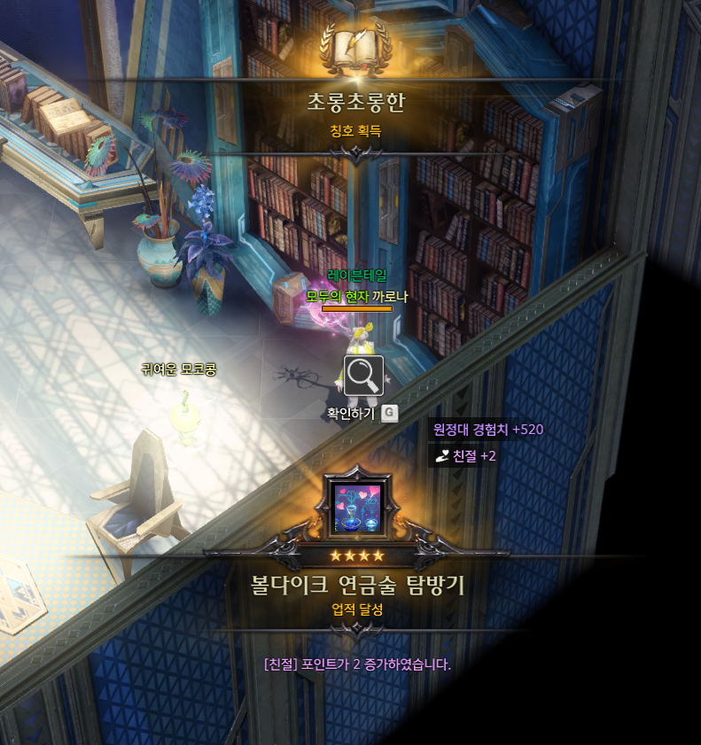 -칭호획득 방법은 현자의 탑 해당지역(하단 이미지 참조)에서 상호작용을 완료화면 획득가능 하며
