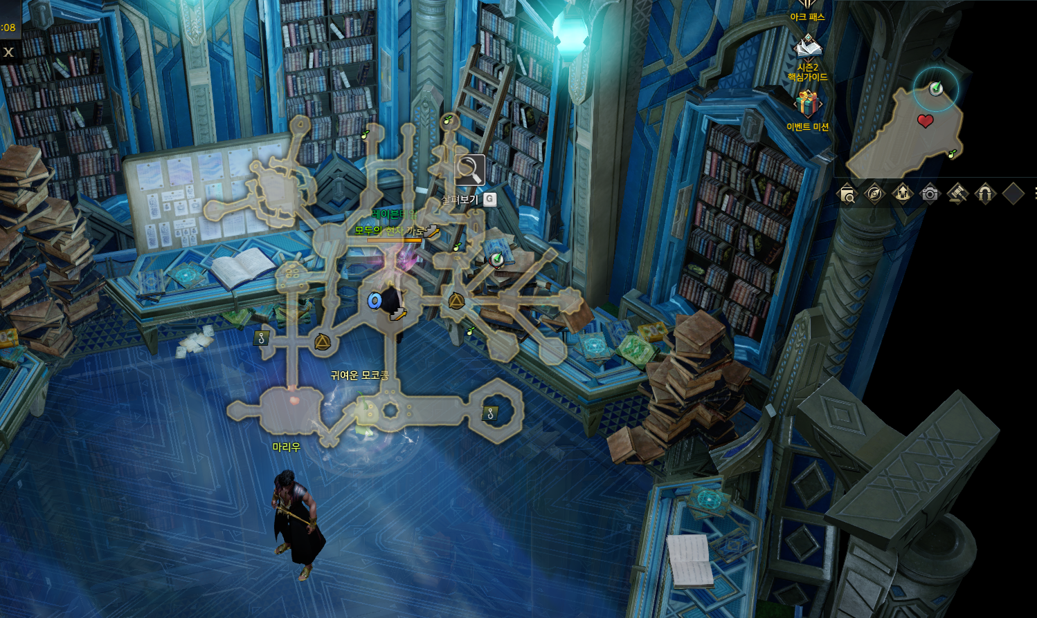 #8 해당위치에서 수집가능 '지성500이상'