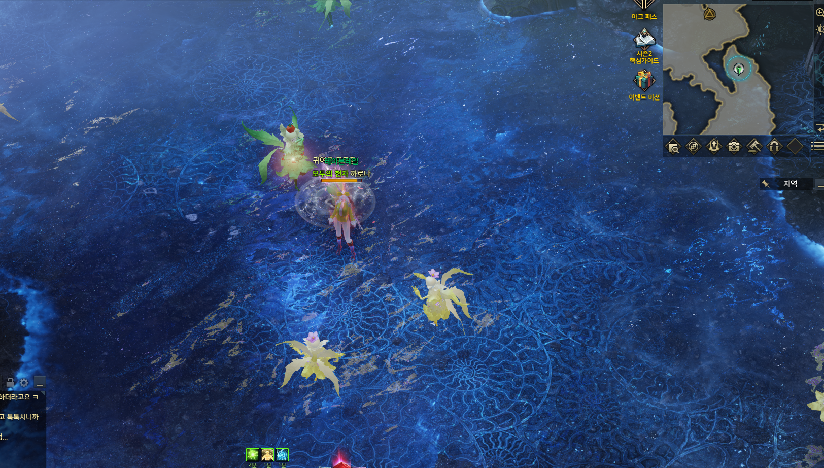 -정령의 인장 버프를 획득하기 위해서는 계절,물,나무 정령버프(미니맵 확인)를 5회 중첩하여 얻는 결정버프3가지를