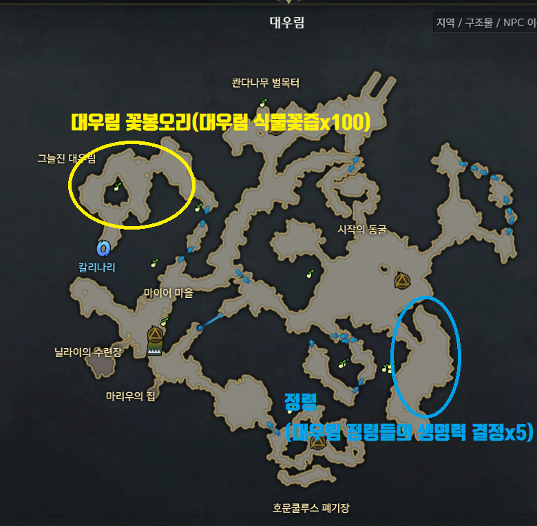 대우림 11시지역 대우림 꽃봉오리 무리들을 처치하고 얻는 [대우림 식물꽃즙]x100
