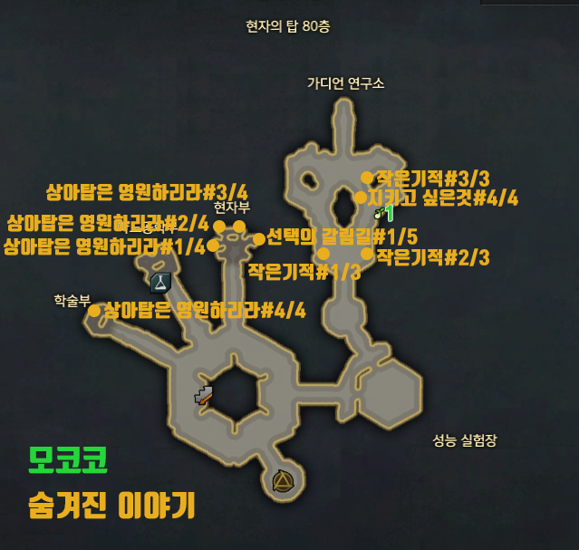 현자의 탑 지역의 모코코1개는 현자의 탑80층 가디언 연구소쪽에 위치하고 있습니다.